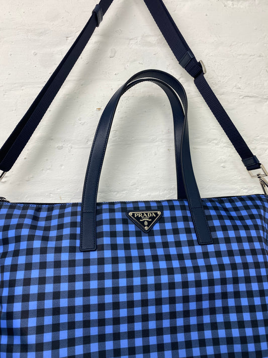 2014 Prada Gingham Printed Nylon Tote